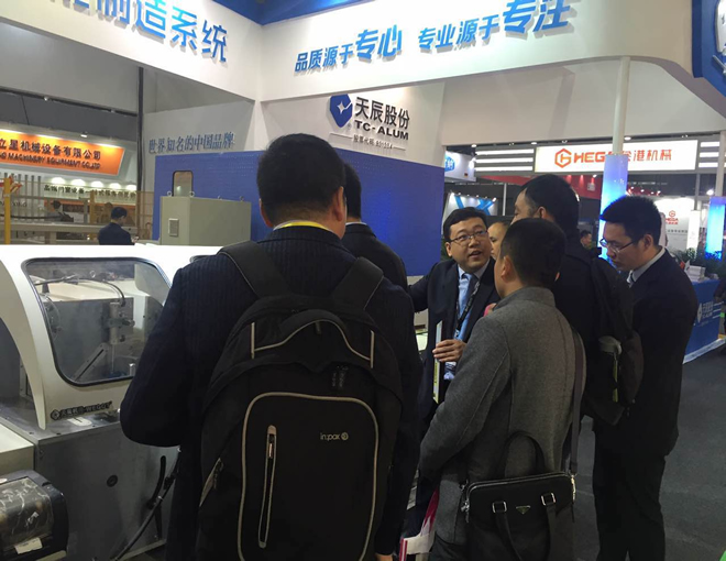 作為國內(nèi)第1家鋁材加工設備上市企業(yè),天辰鋁機攜帶自身最新、最具技術含量的產(chǎn)品亮相此次展會,展位號:2號館C05。展會期間,天辰股份展示了數(shù)控四頭組角生產(chǎn)線、數(shù)控雙料鋸切中心、五金鉸鏈自動生產(chǎn)線、新型高速四軸加工中心、重型數(shù)控雙頭切割鋸五臺最受歡迎的高端設備和最新設備,吸引了大批客戶駐足觀摩以及得到眾多觀展商的認可,開展期間天辰股份展位人流絡繹不絕。
