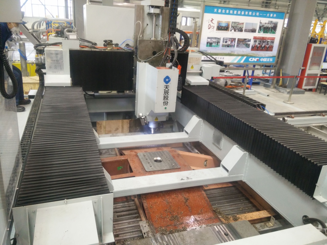 ????近日,濟南天辰鋁機股份有限公司(以下簡稱:天辰股份),為中國南車集團定制研發(fā)的新型超長數(shù)控四軸龍門加工中心,以及為北車集團定制研發(fā)的框式龍門數(shù)控鉆銑中心,均正式交付使用。