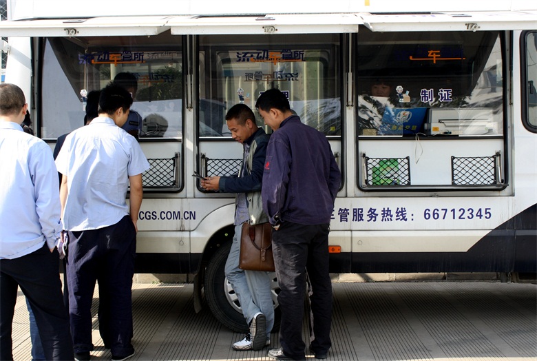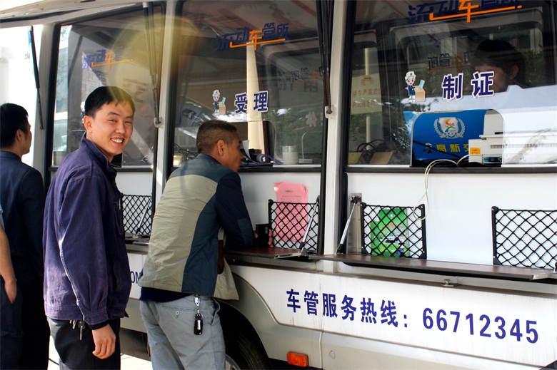 10月15日上午9點(diǎn)30分,服務(wù)車開進(jìn)濟(jì)南天辰鋁機(jī)股份有限公司,現(xiàn)場為企業(yè)員工辦理駕駛證、行駛證和機(jī)動車年檢業(yè)務(wù)。據(jù)統(tǒng)計(jì),“流動車管所”共為企業(yè)150余名員工辦理了駕駛證年檢業(yè)務(wù),發(fā)放宣傳材料、解答咨詢100余次。