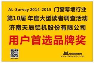 AL-Survey讀者調(diào)查活動全稱:中國幕墻網(wǎng)年度大型讀者調(diào)查活動暨“我最喜愛品牌”評選活動。(以下簡稱AL-Survey)我司作為設(shè)備領(lǐng)域的領(lǐng)先企業(yè),自上界獲得用戶首選品牌及市場表現(xiàn)獎之后,2015年再次憑借“天辰鋁機(jī)”品牌在市場中的優(yōu)異